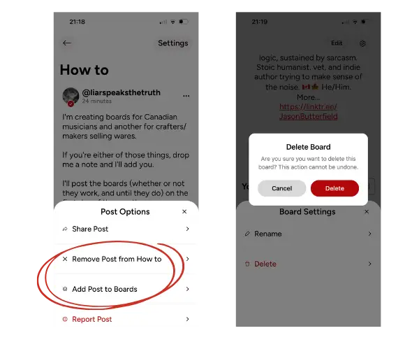 Once created, you can add posts to that board from the post options menu. This allows you to: