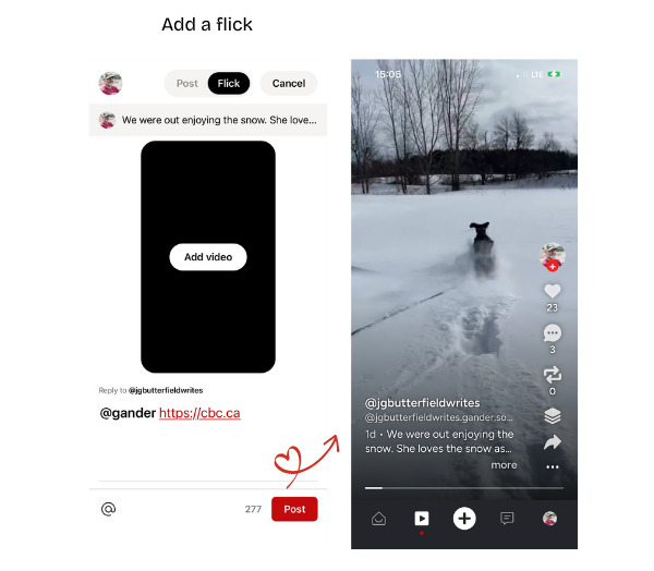 When creating a post, you can switch from Post to Flick at the top of the composer.