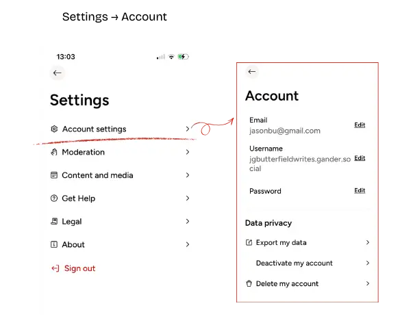 These screens are where you manage your identity, your data, and your experience on Gander Social. New users should review these early, not after something goes wrong.