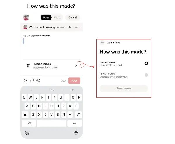 This screen includes the “How was this made?” option when creating posts.